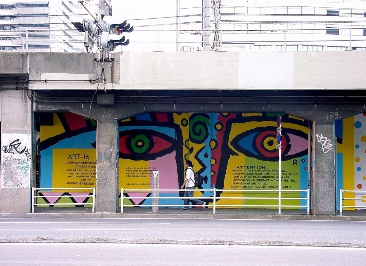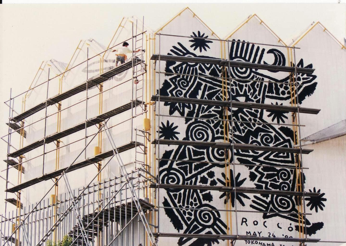 当時の技法は、チョークによるもので、雨風に晒されれば消えていくという文字通りの落書き(=Graffitii)であったためか、それとも時代か、とりあえずはお咎めなし。今度は仕事として横浜とタッグを組むこととなります。 (↗)